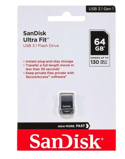 Easily store, secure, and access your data with the compact and portable SanDisk 64GB Ultra Fit USB 3.1 Gen 1 Flash Drive. It offers lightning-fast transfer speeds and includes SecureAccess 128-bit AES encryption and RescuePRO data recovery software for added peace of mind.