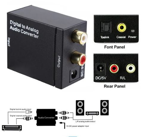 It converts Coaxial or Toslink digital audio signals to analog L / R audio