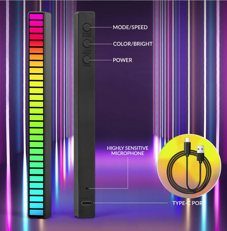 4 Levels of Brightness & 5 Levels of Speed – You can easily control the brightness, speed mode of the music levels light according to your preferences through the MODE/SPEED KEY and COLOR/BRIGHT KEY.