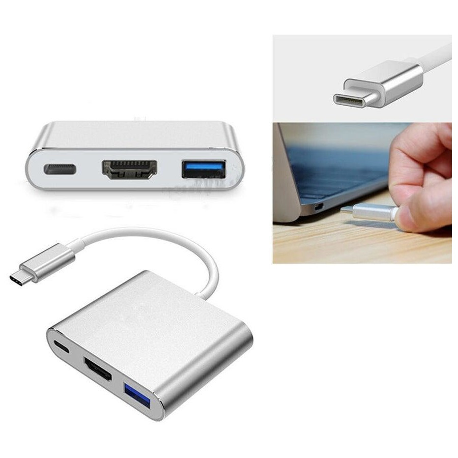 USB 3.1 Type-C male connector to HDMI USB 3.0/USB-C charging port adapter.